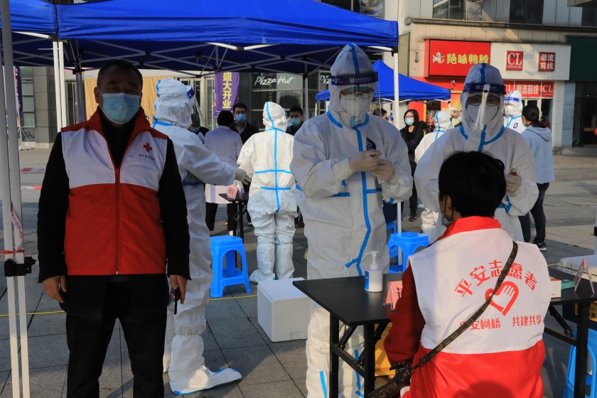疫情防控进入关键时期,为积极配合,打好攻坚战,上虞区红十字会机关干部全员下沉到街道结对社区当志愿者,维护核酸检测秩序、核查较对未检人员名单。9日晚收到第一笔网上捐赠款18888.88元,10日接受了海而斯(上海)生物科技有限公司捐赠的防疫物资:防护服80箱4000件,隔离衣10箱1000件,防护帽5箱1500件,防护鞋5箱1000件,总价302050元,已全部交区防控办统一调配。