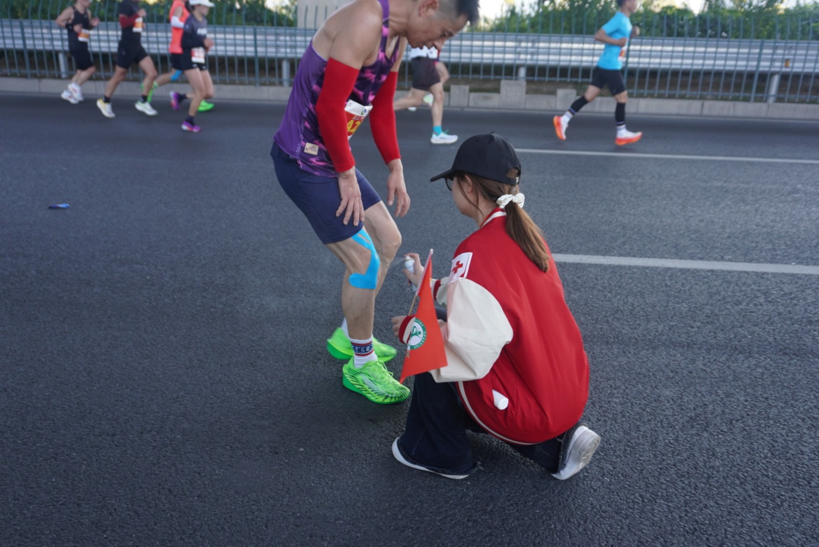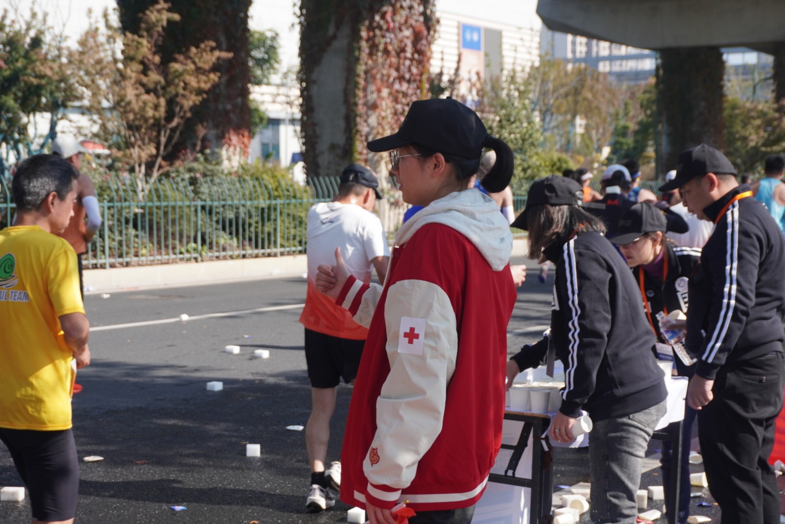 坚守岗位,保障赛事安全。赛事当天,700名红十字志愿者提前抵达指定点位。比赛场上,志愿者们密切观察跑者状态,按要求与专业医疗人员保持沟通,及时提供必要的医疗协助,有效发挥了辅助支援作用,为赛事平稳进行贡献了力量。