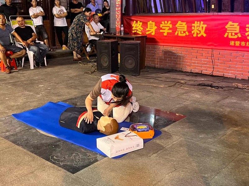 来自诸暨市中医医院的红十字应急救护培训师资徐老师,用朴实的语言讲述了日常可见的心脏骤停、气道异物梗阻的判断方法并用理论与实际操作相结合的方式对心肺复苏术、气道异物梗阻的急救方法进行全方位讲解。
