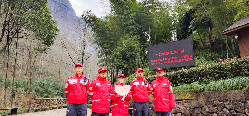 初一到初六春节期间,志愿者们分队、分组每日值守在大佛寺景区、天姥山景区和十九峰景区。