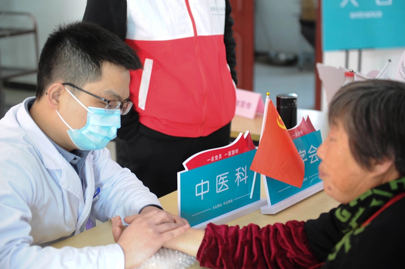 在梅林山村文化大礼堂,来自市人民医院呼吸内科、骨科、眼科、风湿免疫科、神经内科、心血管内科、消化内科、心电图室、超声科等10余个科室的专家为当地群众现场进行问诊咨询。医务人员为大家测血压血糖,初步询问老人们身体健康基本状况,根据情况引导大家到相应专家处进行问诊,专家们耐心倾听、分析病因,为村民一一答疑解惑,给予诊疗意见建议,中医师和心理咨询师则为一些长期受心理障碍困扰的老年人提供心理辅导。